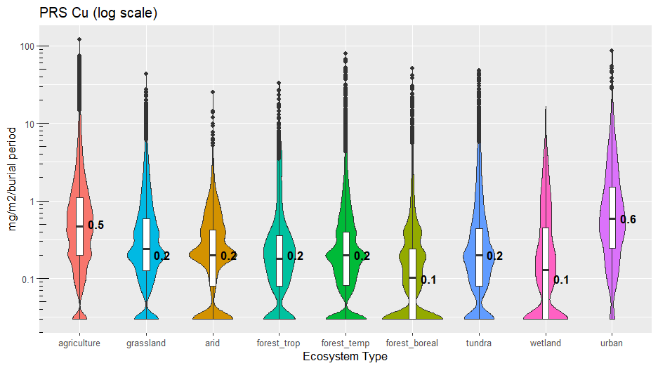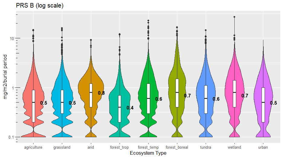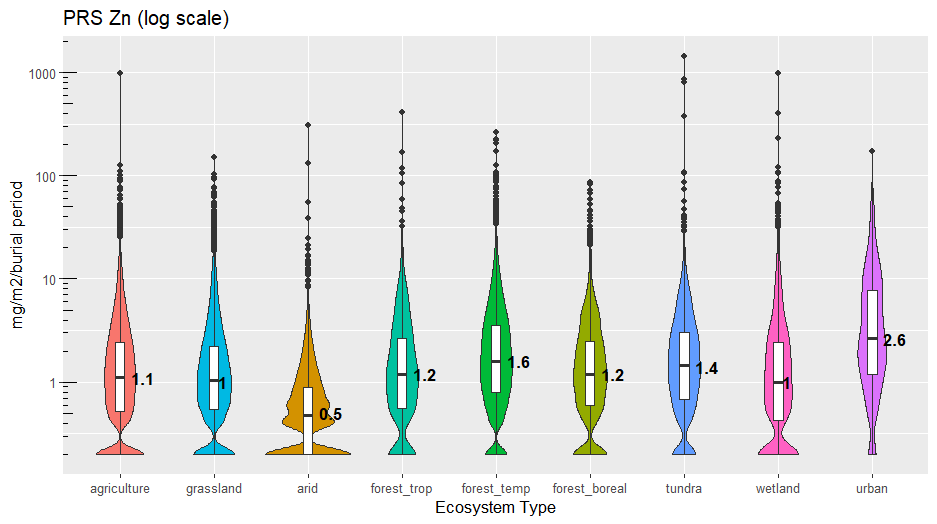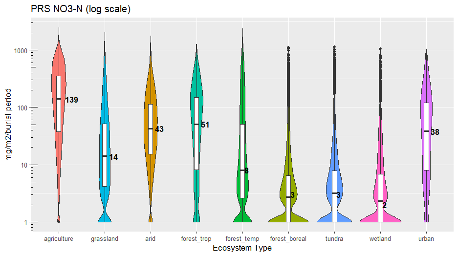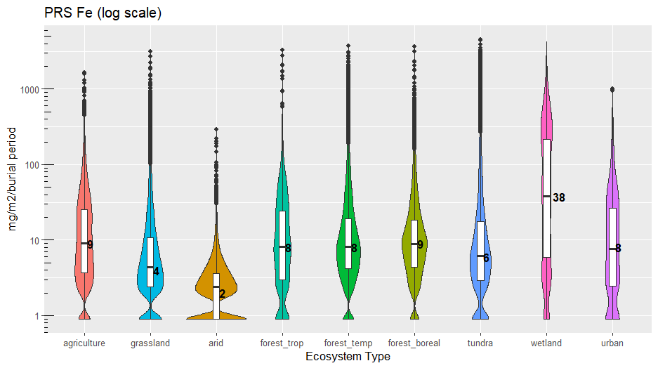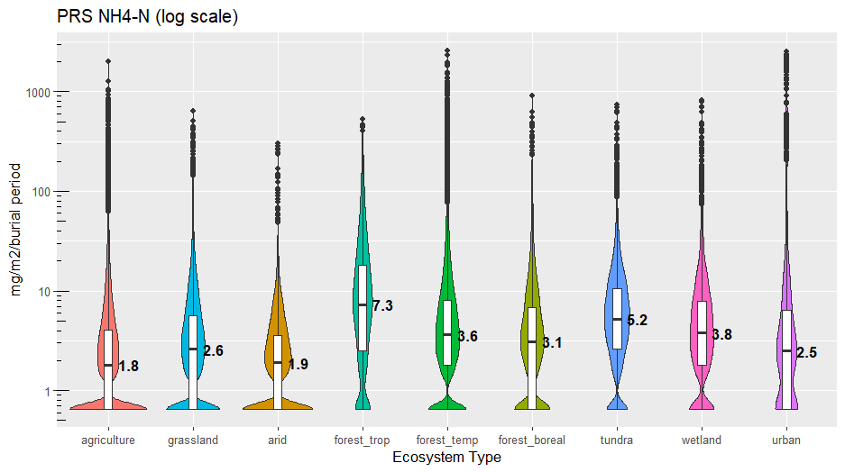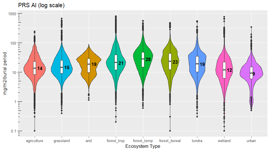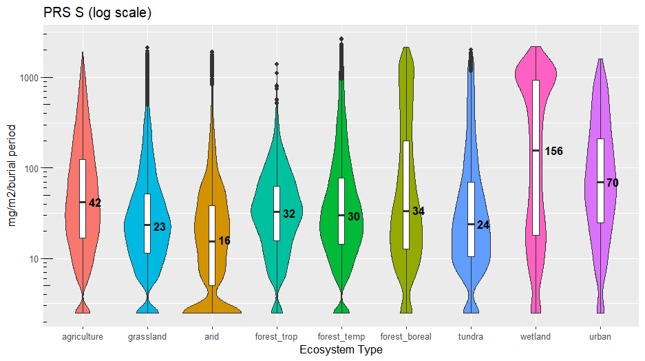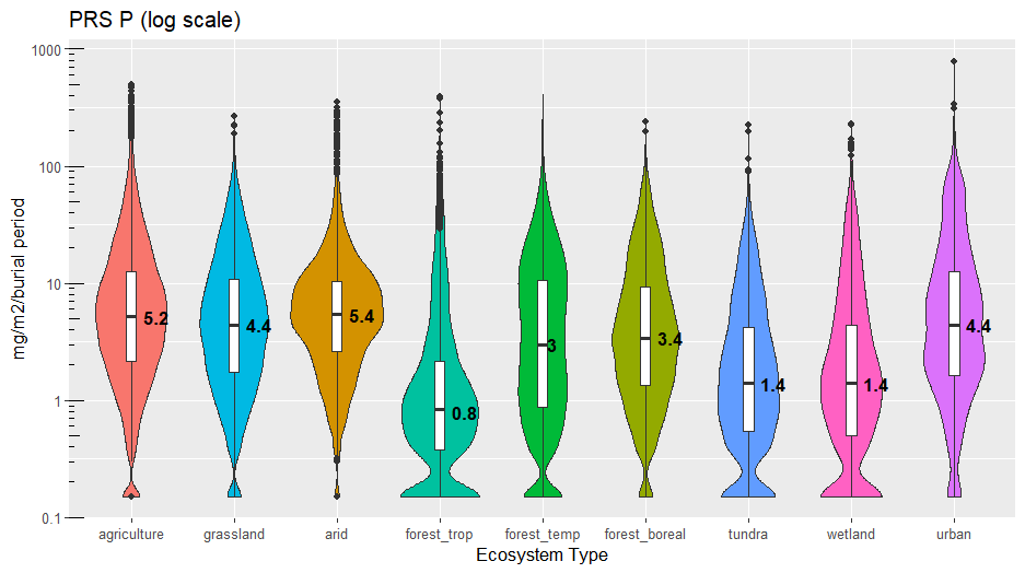 Plant Root Simulator (PRS®) Probes have been used for the measurement of soil nutrient supply rate in a wide range of ecosystem types since 1996. A summary of results is provided for the following ecosystems (see notes below):
